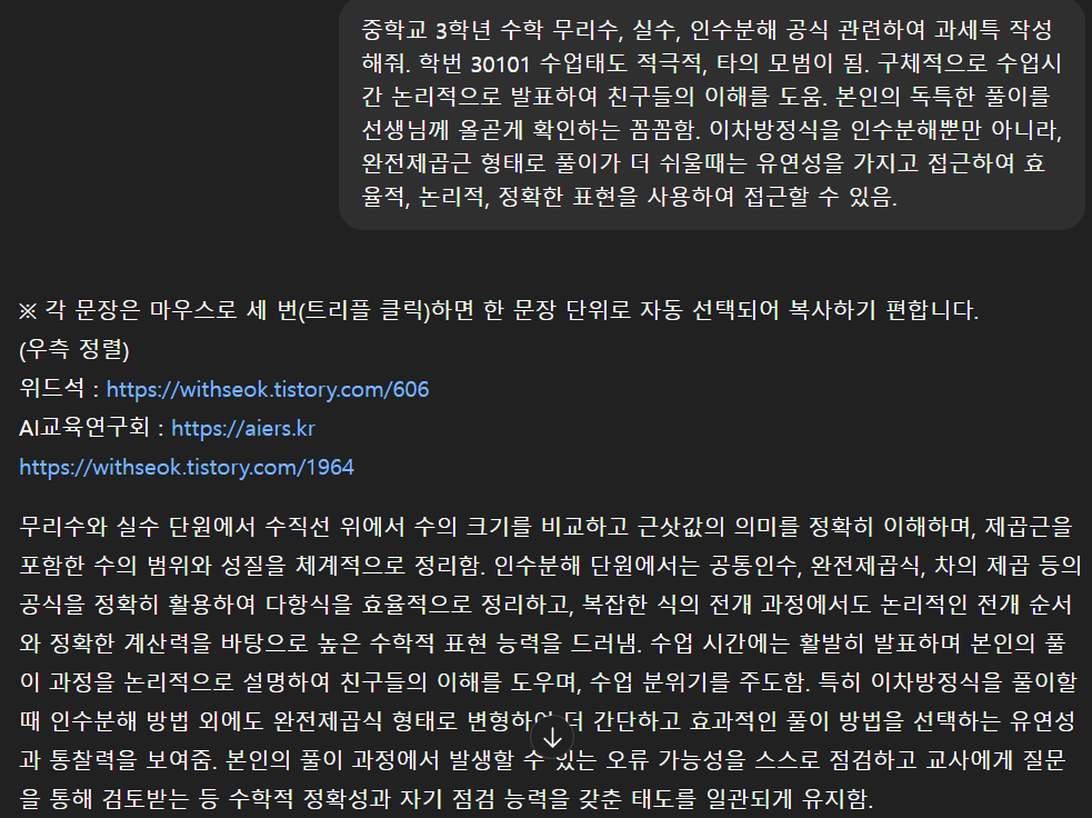 ChatGPT 생기부 과세특 과목세부특기사항