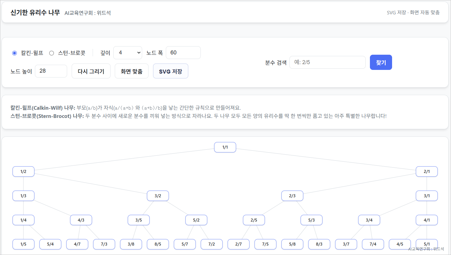 신기한 유리수 나무: Calkin–Wilf / Stern–Brocot 트리 시각화 (AI교육연구회 : 위드석)