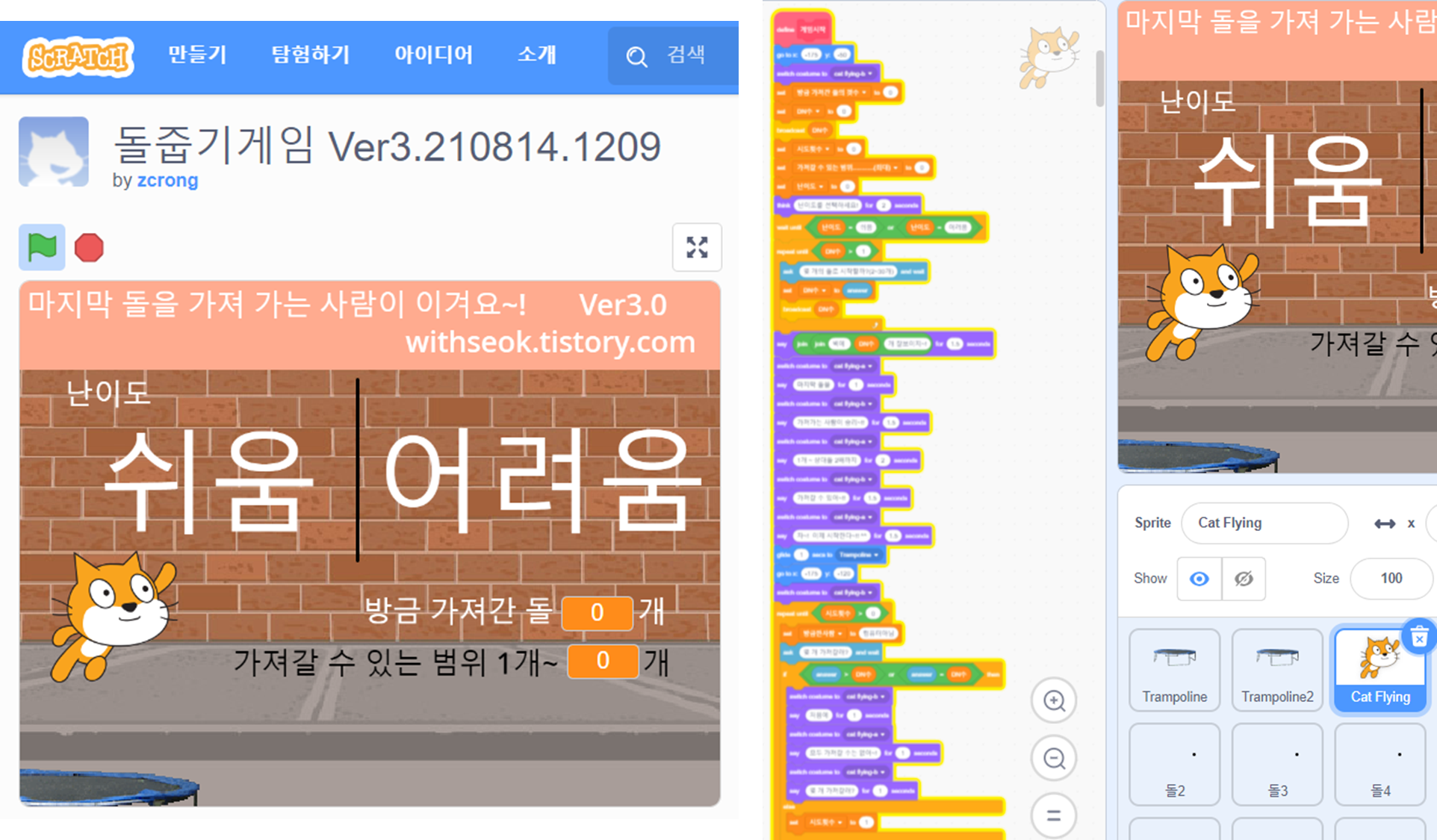 스크래치 돌 줍기 게임 2.0 : https://withseok.tistory.com/725