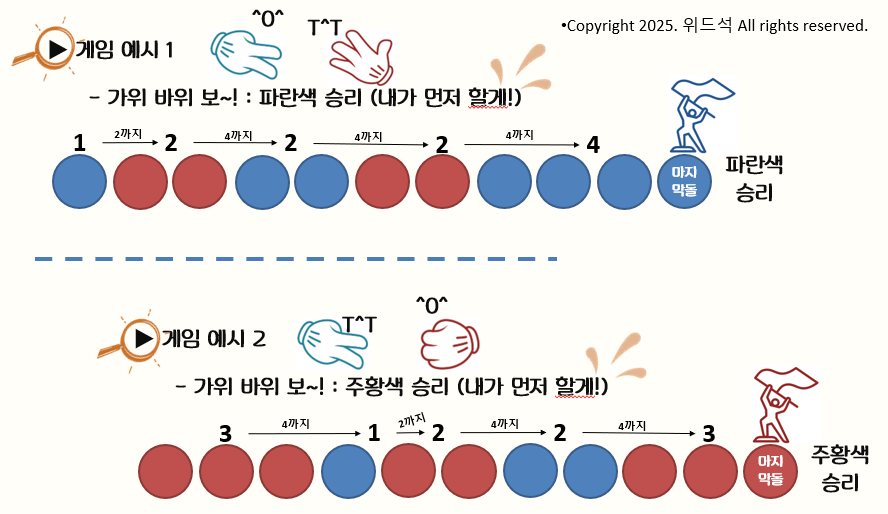 | 규칙 1 : 처음하는 사람은 모든 돌을 가져갈 수 없다. |