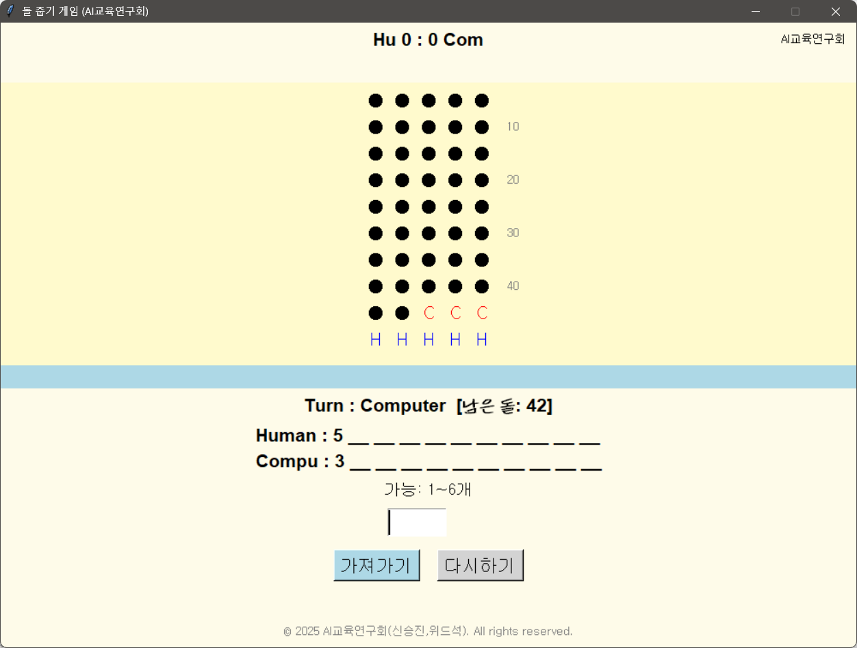 | 승리 조건 : 마지막 돌을 가져 가는 사람이 승리!!! |