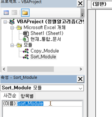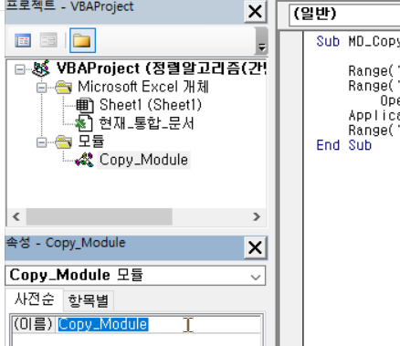 | 왼쪽 아래 속성창에서 모듈 이름 변경 Copy_Module |