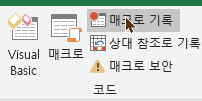 | VBA 창을 열어 (단축키 Alt + F11) 왼쪽 프로젝트 창에서 Module1 더블 클릭 오른쪽 기록된 매크로 확인 |