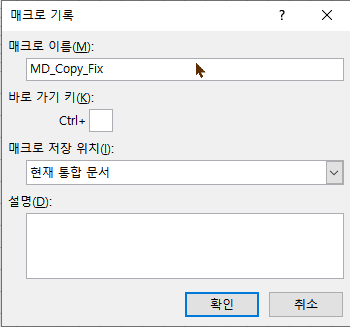| 개발도구 - 매크로 기록 매크로 이름 : MD_Copy_Fix |