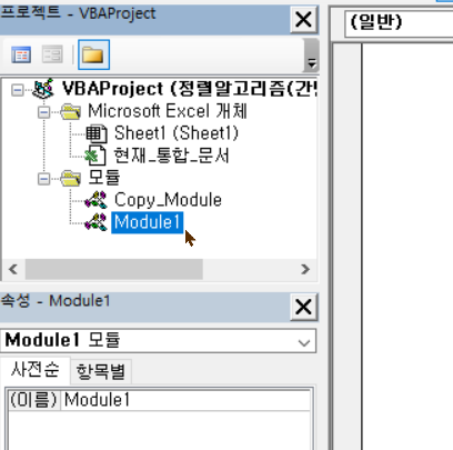 | 프로젝트 창에서 마우스 우클릭 삽입 모듈 |