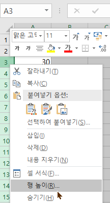 | 3행에서 32행 까지 행높이를 조정한다. |